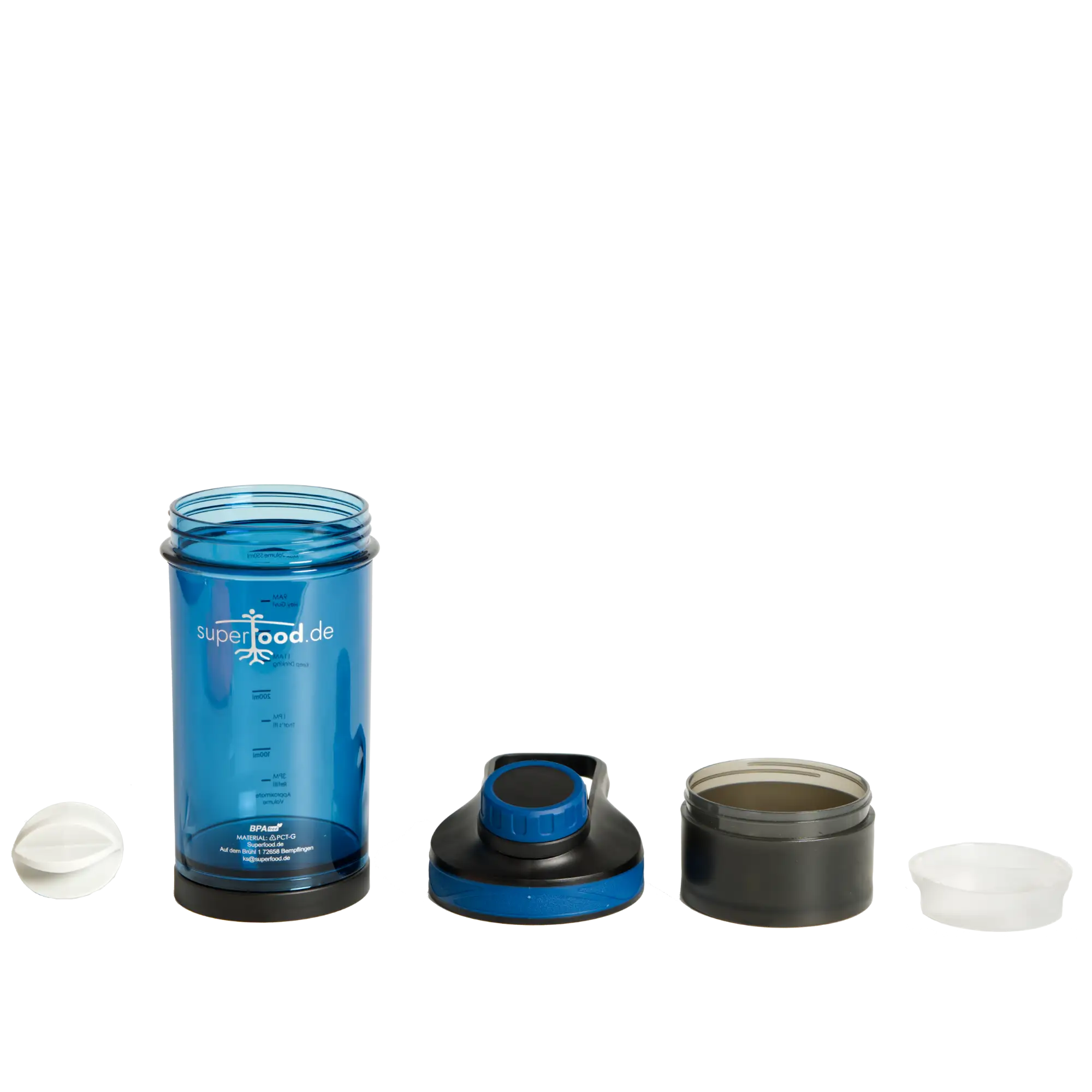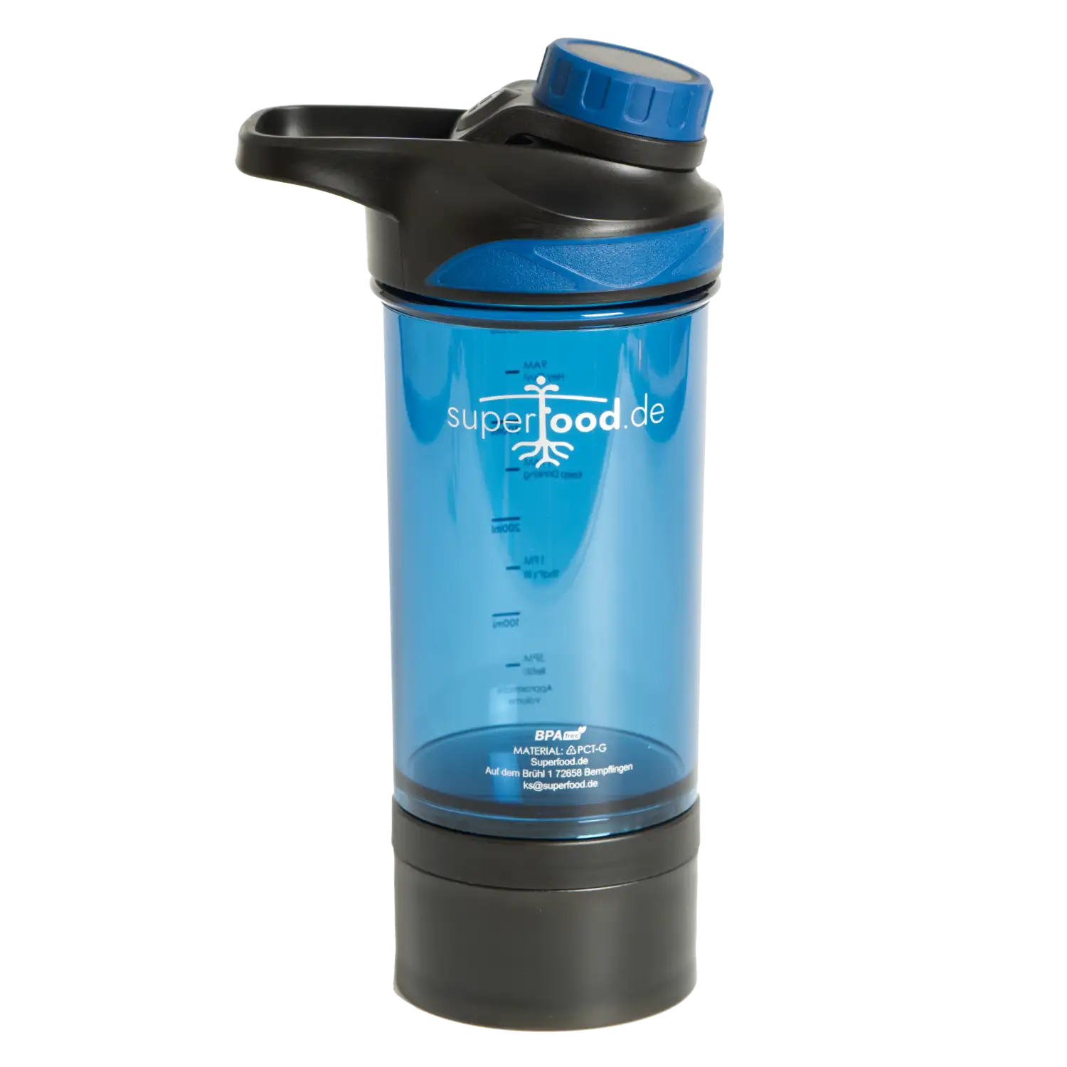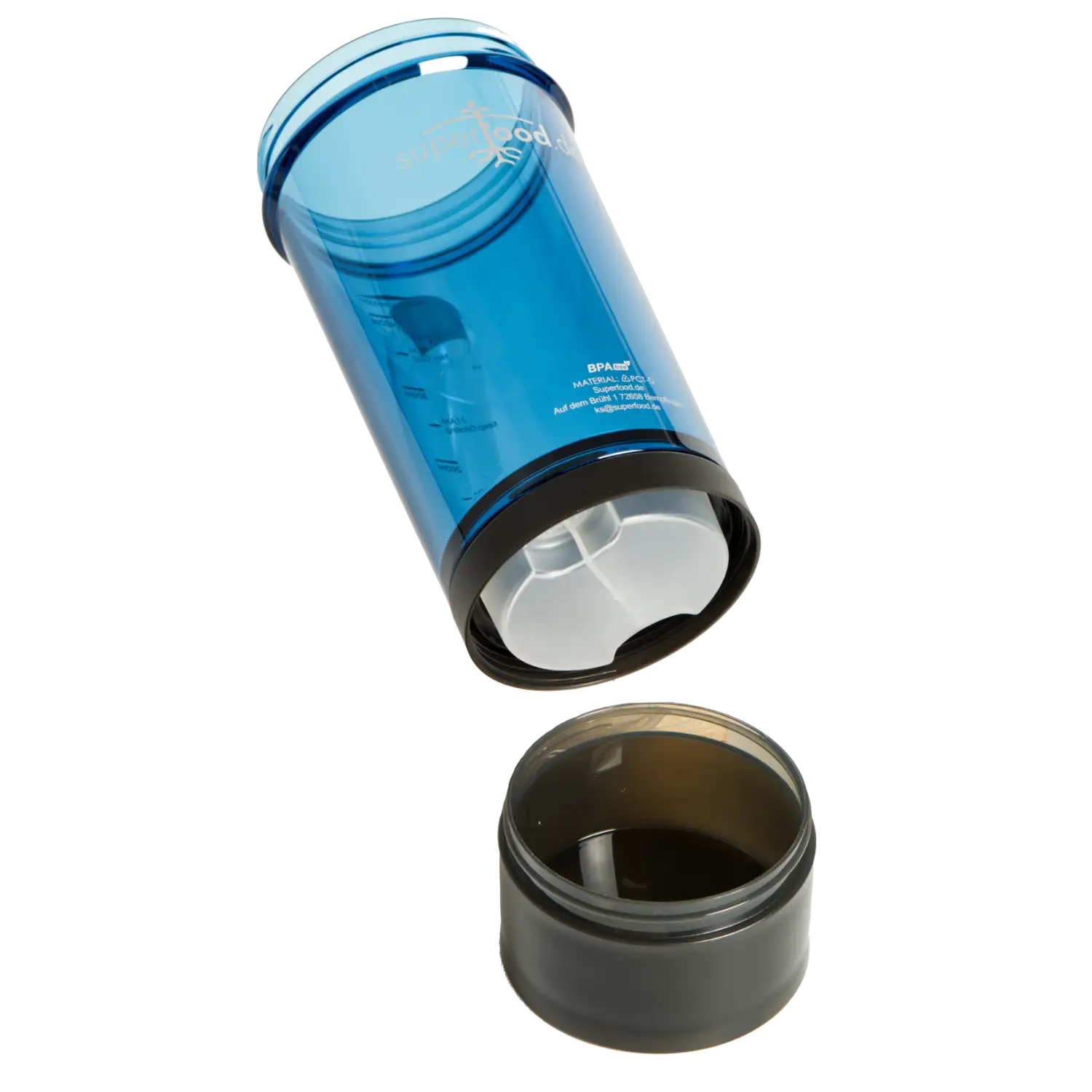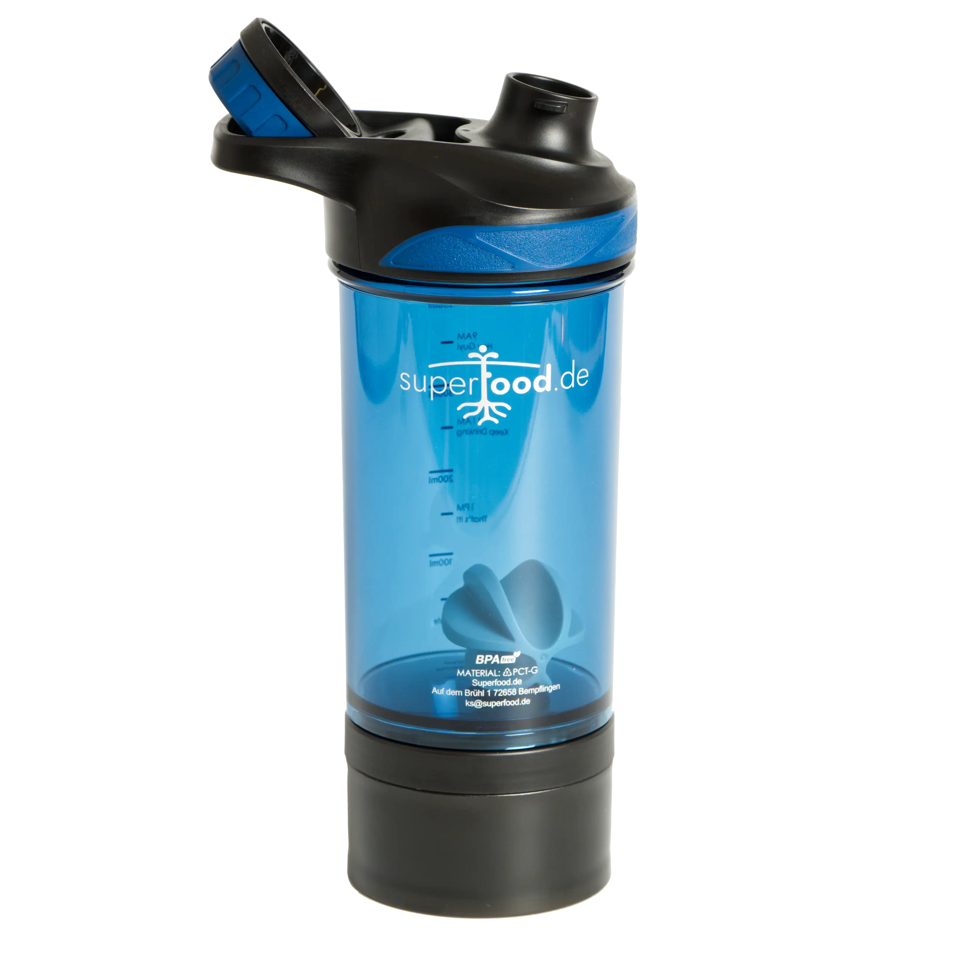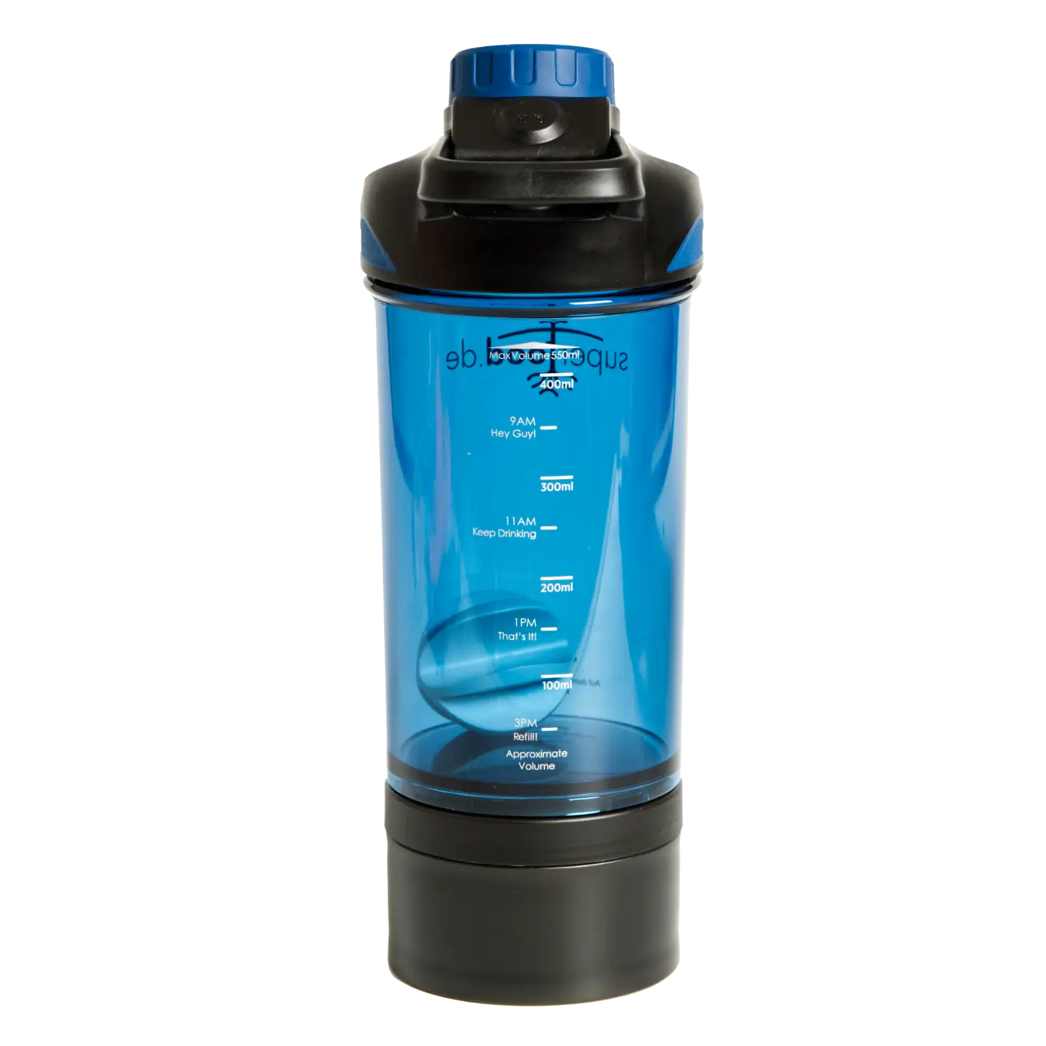 Unten ist ein Fach für Pulver, damit du deinen Shake oder Drink anmachen kannst wann immer du möchtest.